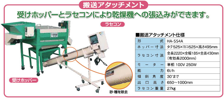 4. 受けホッパーとラセコン使用により、乾燥機への張込みができます。