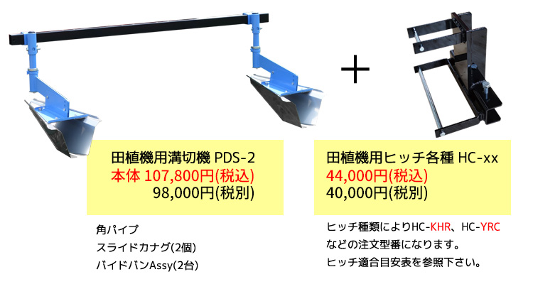 溝切作業と言うと皆さん「辛い作業」と思い浮かべると思います。 なぜ辛い作業なのか? 田んぼの中を歩く、押し付ける力がいる、梅雨時期の作業で暑い、などなどいろいろ在ると思いますが、一番は田んぼを歩くことだと思います。 そこで考案されたのがこの「乗用田植え機用溝切機」です。 農作業でも大変な作業の溝切機を、いかに効率よく、楽に出来るか、そうゆうことから誕生したのが乗用田植え機用溝切機 PDS-2Xです。 眠っている中古乗用田植機のリサイクルに、最適です。製品特徴